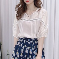 港風復古蕾絲拼接半袖雪紡衫2026夏新款法式寬鬆顯瘦上衣潮女